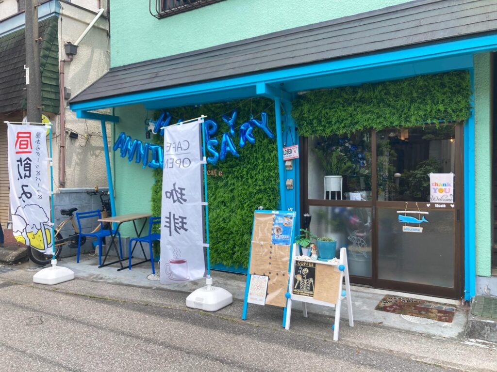 みのり台にある『19cafe』は、タコスやタコライス、自家製スイーツが人気のカフェ。青と白を基調にした爽やかな空間で、ランチや昼飲み、ティータイムにもぴったりです。