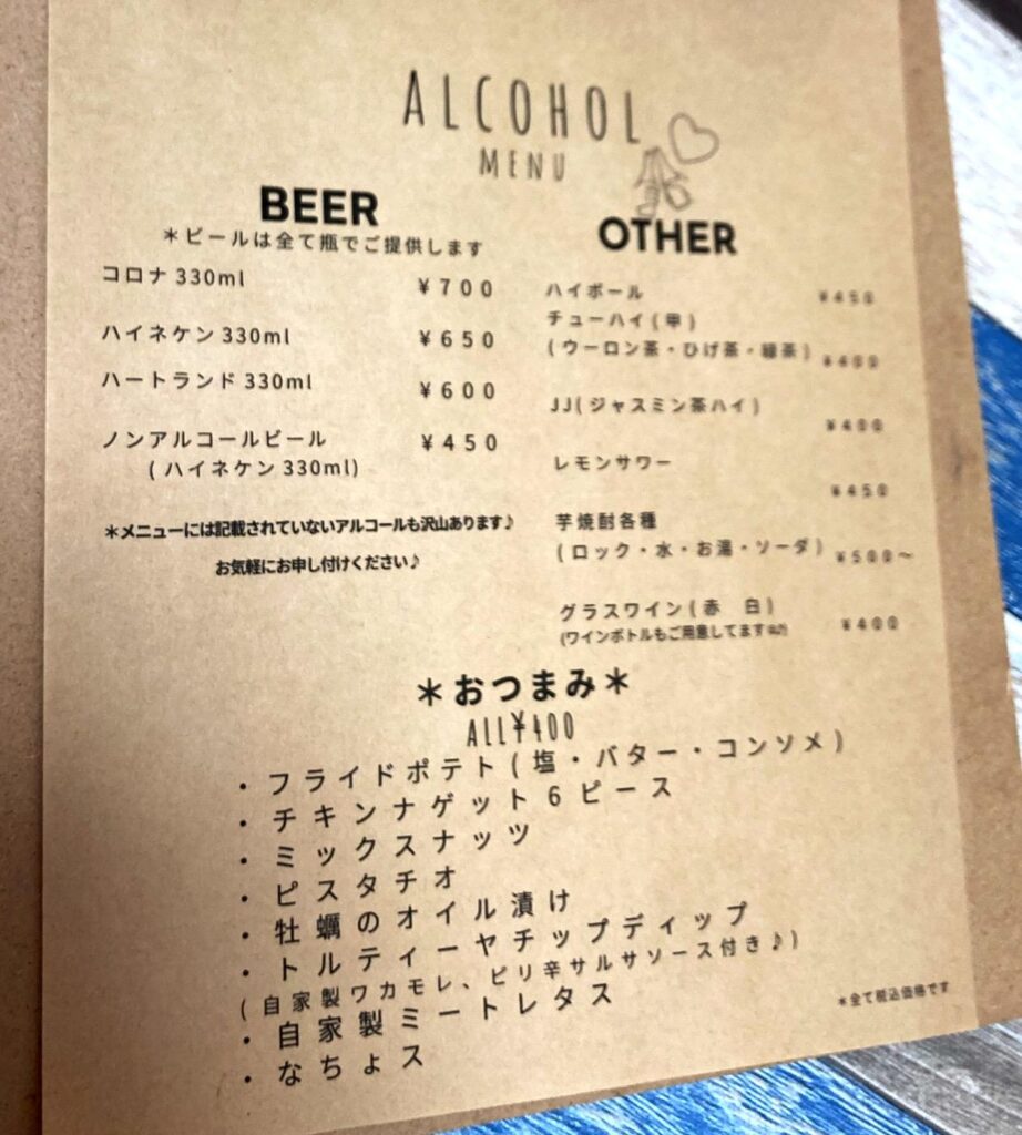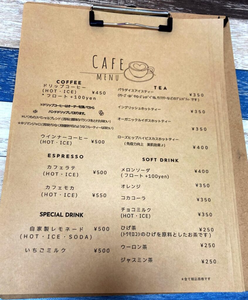 ドリンクメニューは450円前後、フードは800円ほど、デザートは400円ほどです。フードメニューはドリンクやスイーツとのセット割引があります。