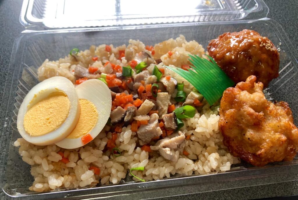 鶏めしだけでなくからあげ、つくね、煮玉子が入っていて、見た目よりもお腹がいっぱいになりました。つくねには刻みタマネギが入っていてシャキシャキ。