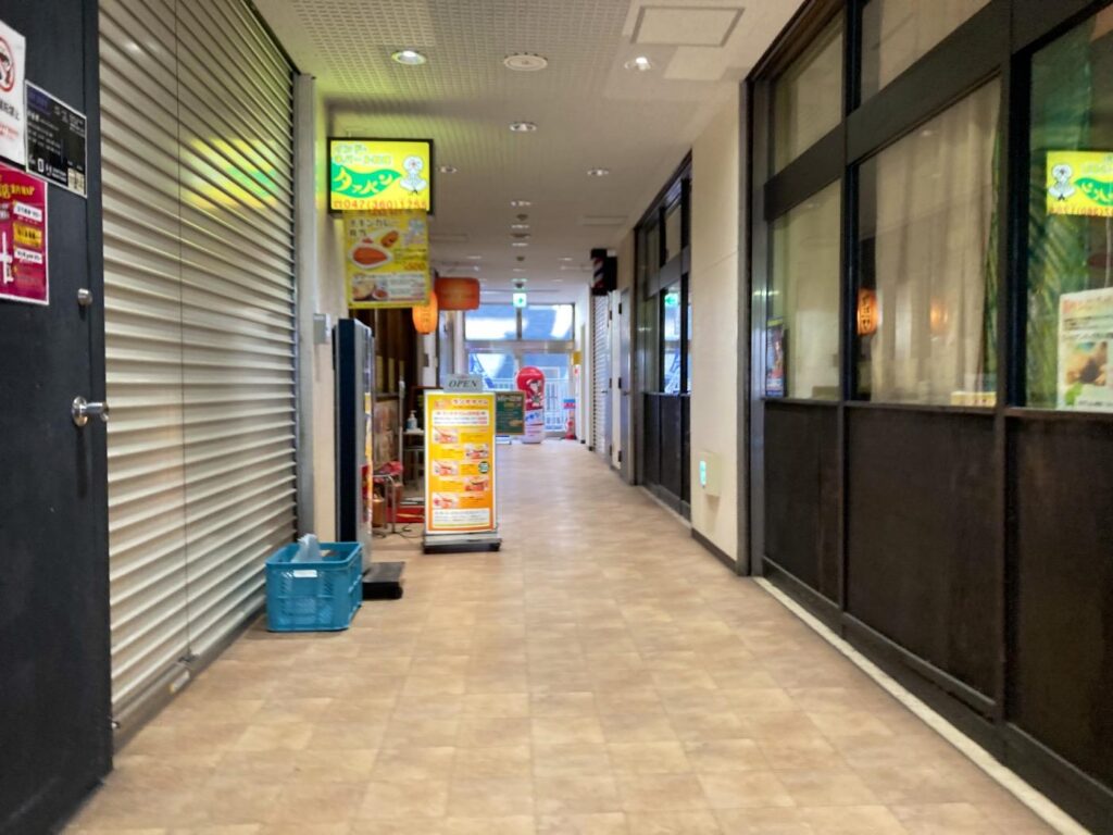 東口デッキを進むとすぐ看板が見えてきます。訪問時はお昼ピークを過ぎた14時近くでしたが、店内には5組ほどが入れ代わり立ち代わり訪れていました。