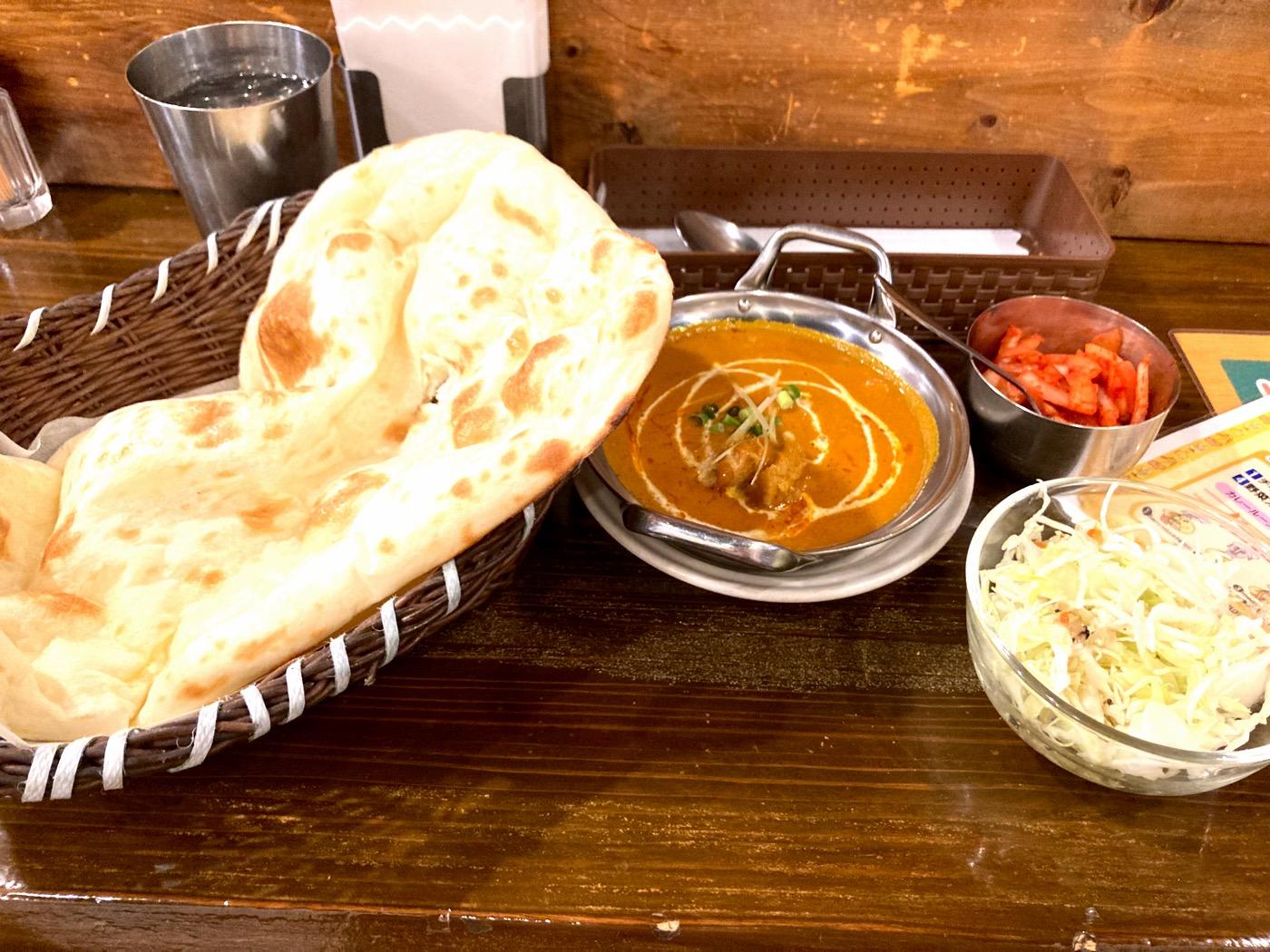 ナンはもちもちとサクサクの具合がちょうどよく、これだけ大きくてもぺろりと食べ切れました。