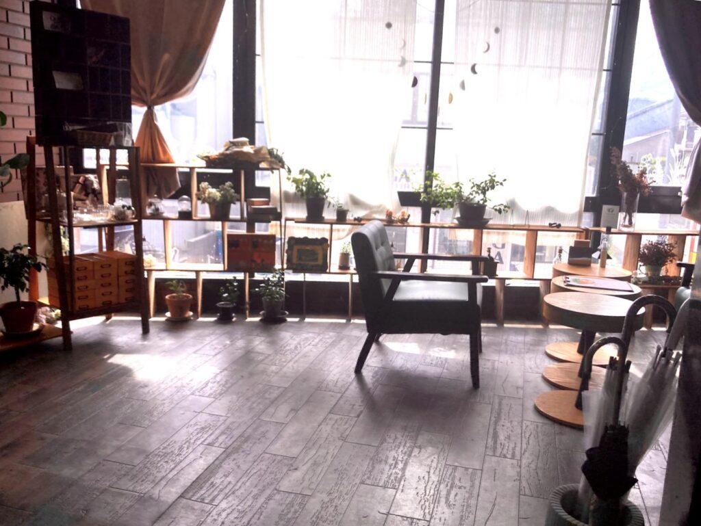 扉からは中の様子が見えませんが、扉を開くと店内はガラス張りで日光が優しく入ってきます。