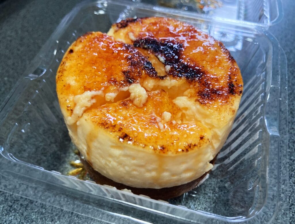 表面がカラメル状に焦がされているので、クレームブリュレ同様パリパリしているかと思ったのですが、カスタードクリーム、ゼラチン、軽く泡立てた卵白に熱したシロップを加えて作る「クレーム・シブースト」という甘いクレームの表面を焦がしているだけなので、スフレのようなふわふわ食感でした。
