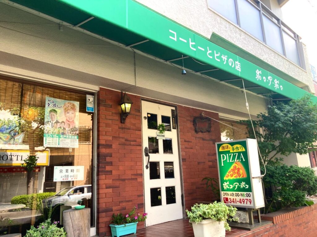 馬橋の知られざる名店『コーヒーとピザの店 ポコアポコ』。馬橋駅から徒歩6分ほど。ゆりのき通り沿いにある、創業50年近いお店です。