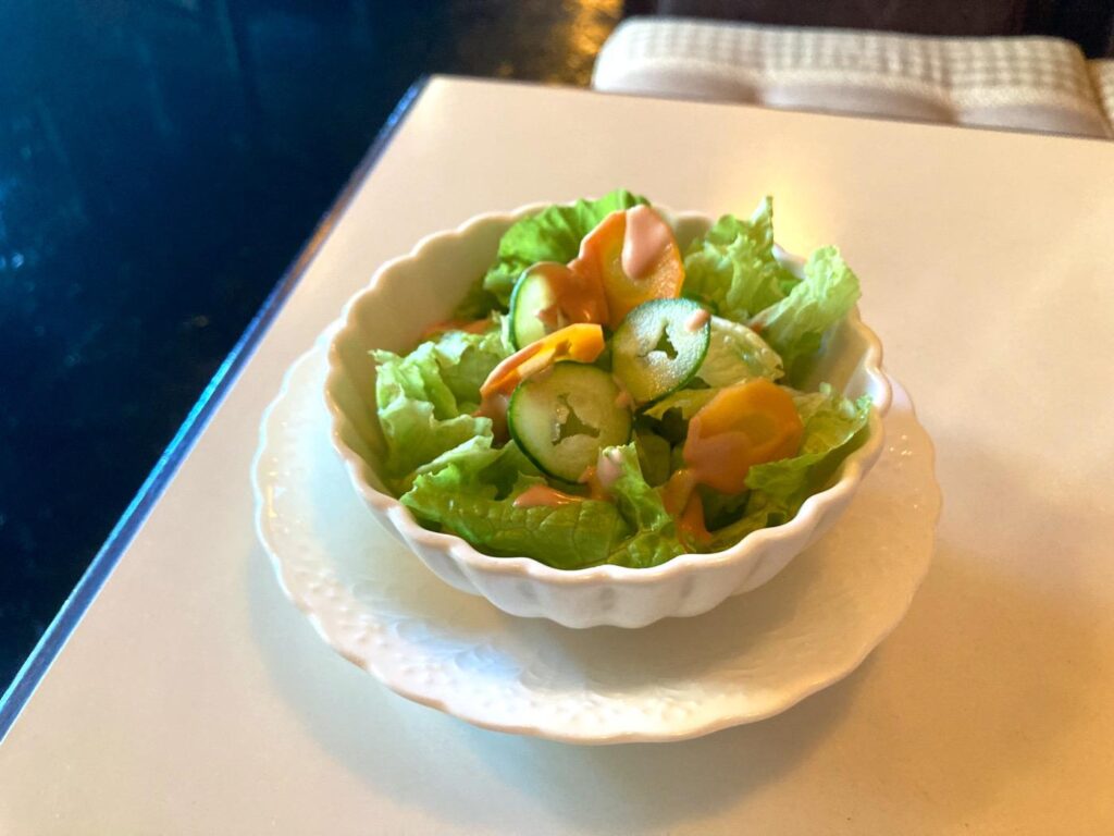 やや苦めのコーヒーに日光に負けそうな身体を休ませてもらっていると、サラダが運ばれてきました。