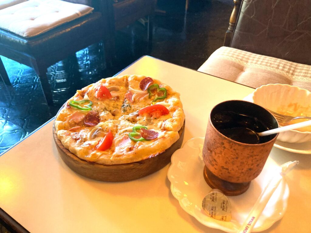 セットで1,300円というと、喫茶店で使うお金としては決して安くはないと感じるかもしれません。しかし、単品で頼むとミックスピザ1,200円。それにプラス100円でコーヒーとサラダがついてくるのは、お得ではないでしょうか。