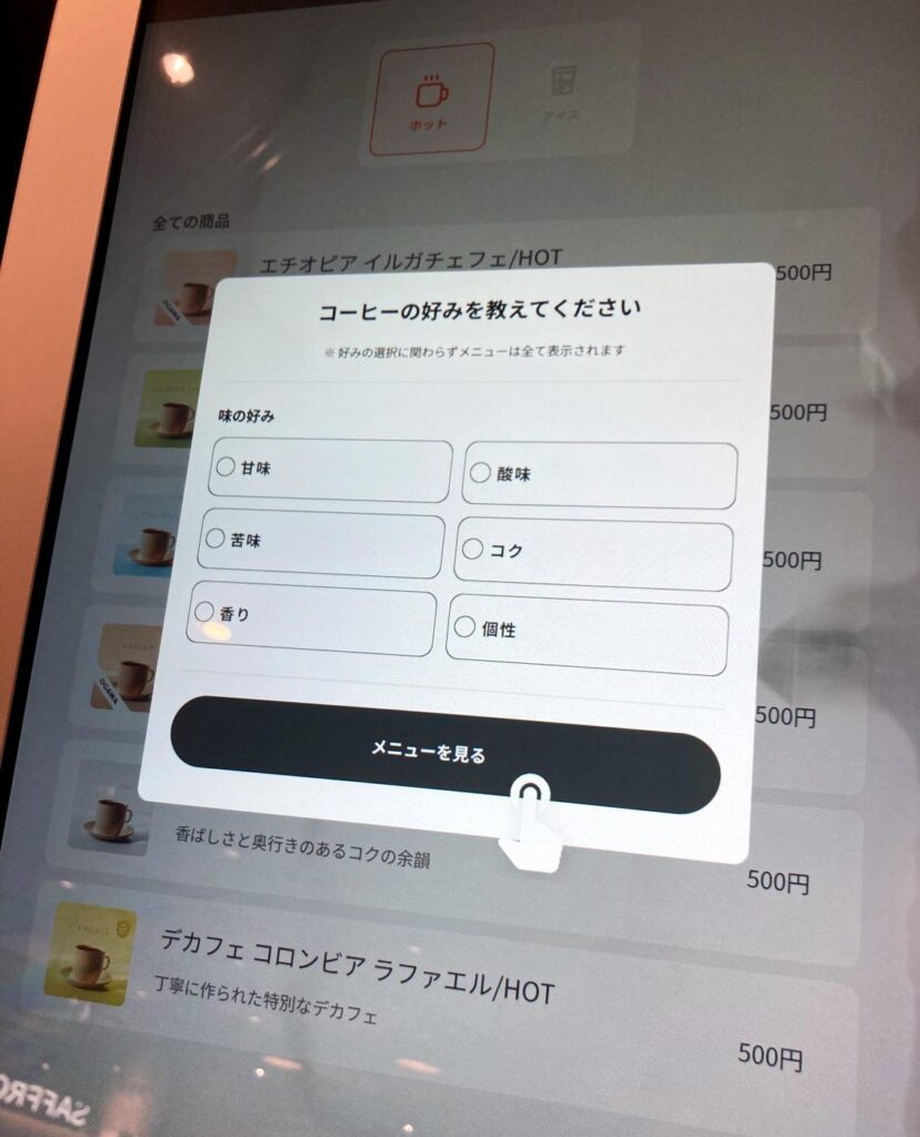 「好みの味」を選ぶとメニューから絞り込んで表示してくれるみたいです。