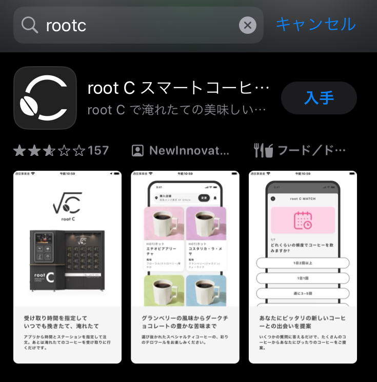 アプリを検索してインストール。注文にはユーザー登録とログインが必要でした。