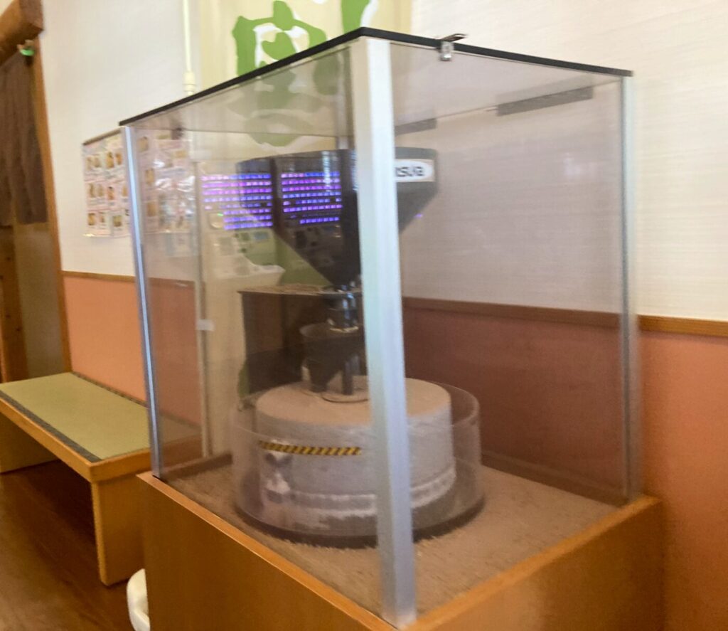 中でも、石臼で挽いたそば粉100%の「十割そば」が食べられるのがポイント。実際に石臼でそば粉を挽いている様子も見れました。