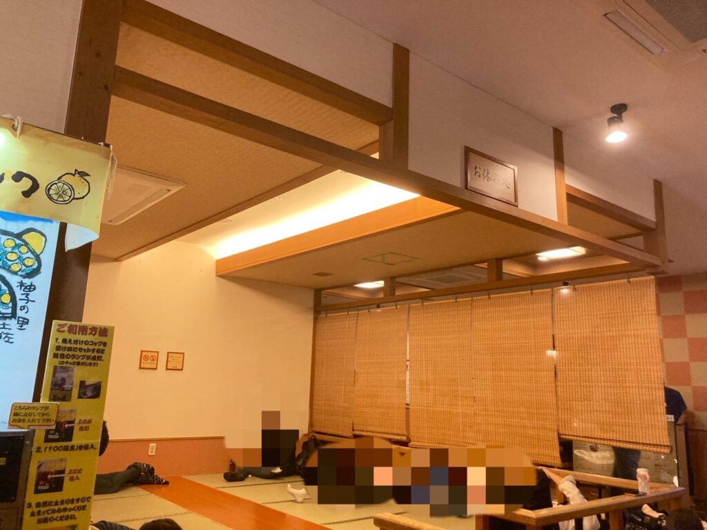お食事処を通り過ぎると、足を伸ばしてくつろげるお休み処があり、その目の前がお風呂の入口です。