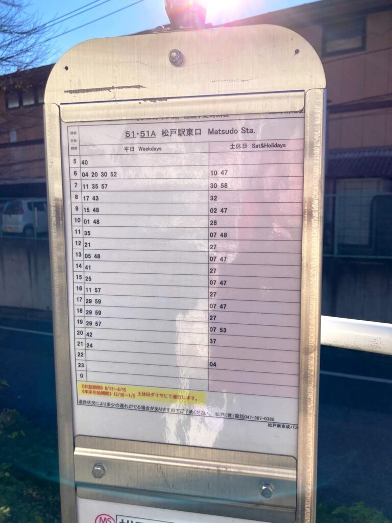 また、松戸駅からバスが出ており、本数は多くないですが、施設のすぐ前のバス停に停まるのでこちらも便利です。
