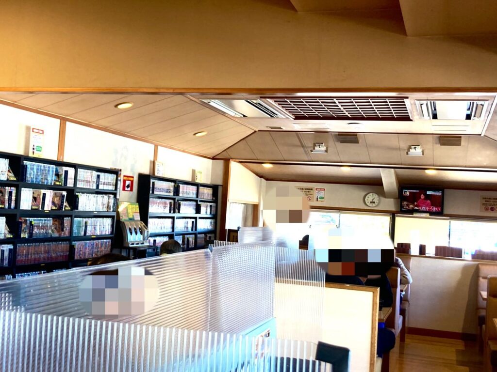 漫画も多く取り揃えられているお休み処。奥にはリクライニングの座席も。