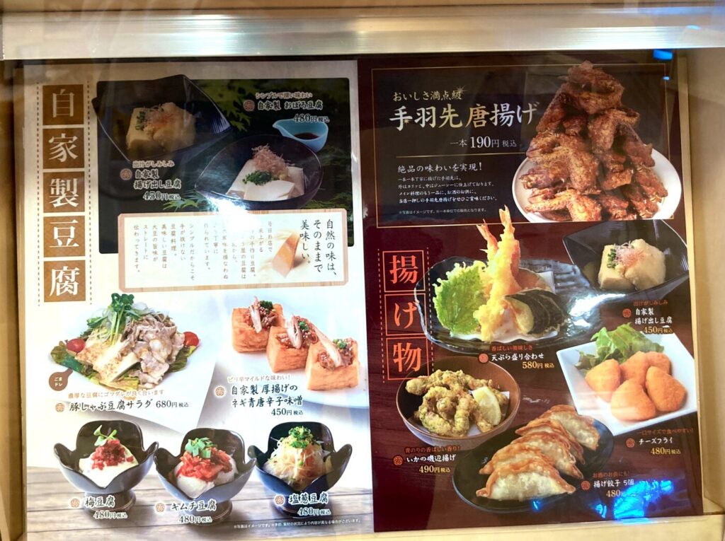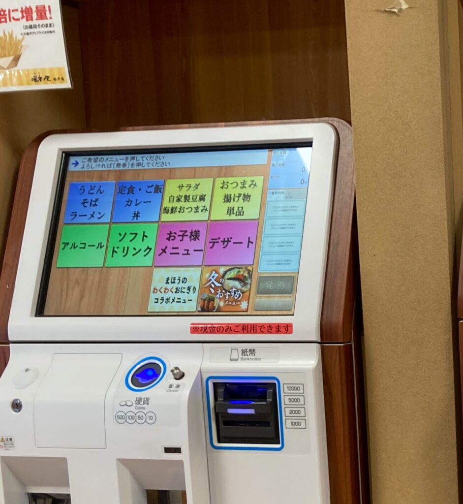 食事は券売機から注文可能です。麺や定食、丼もの、揚げ物などの一品ものまで種類豊富。