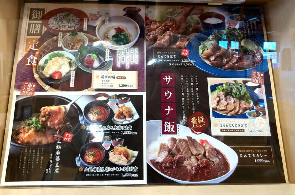 口コミでは温泉施設なのにご飯の味も人気とのことで、美味しくいただきました。お風呂だけでなく食事も楽しめるのはいいですね。