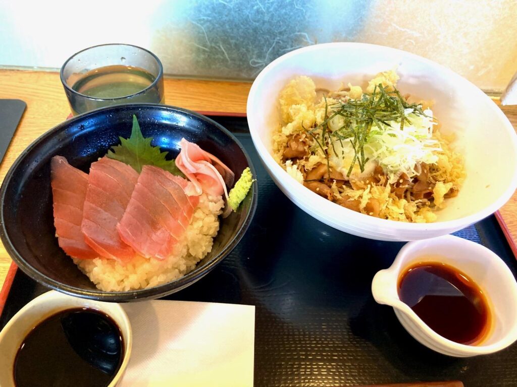 この日は「まぜ蕎麦とミニ丼セット」(1180円)をいただきました。ミニ丼は鉄火丼、ねぎとろ丼など4種類から選べました。