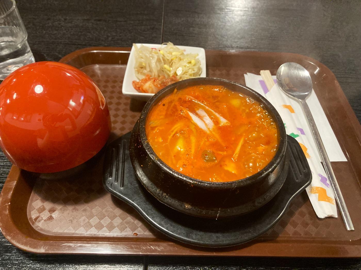 今回はあさりスンドゥブ(1280円)をいただきます。メインのスンドゥブにライスとナムルがセットになっています。